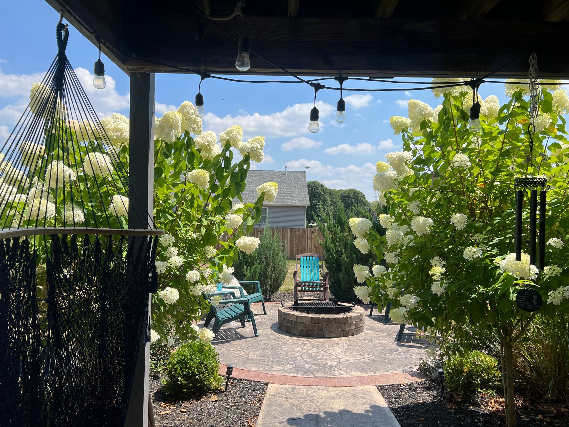 This back yard living space was designed to give the family a space to enjoy the outdoors. For this project, Design Life provided the design only, and the homeowner took care of the rest. Most of the work they did themselves, contracting only the major concrete work to the pros.