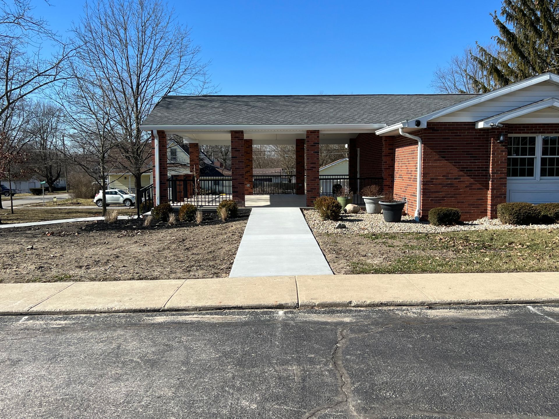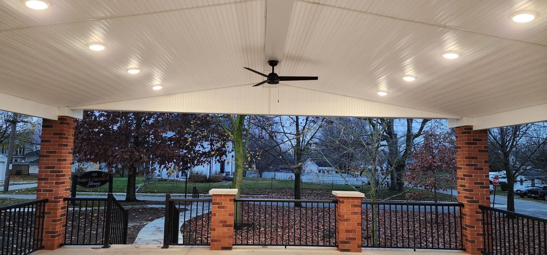 The Ralph E. Hazelbaker Library Pavilion visualizes the addition of an outdoor pavilion extension to the existing library. This space will serve as an opportunity for outdoor programming and community gathering. This design includes an outdoor pavilion, commemorative walkway, enhanced landscaping, and new connections to surrounding sidewalks. Graphics created by On Point staff were used to gain 75% of the necessary funding for the project and construction began in 2023.